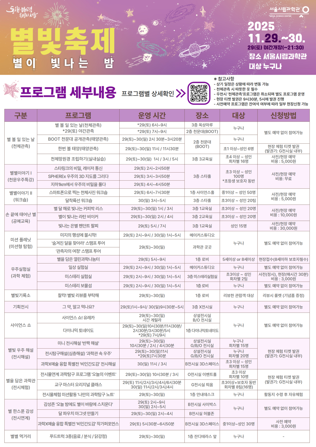 | 별빛축제 - 스마트폰으로 찍는 천체사진 워크숍(유료) | 2025-11-29 00:00:00.0~ 2025-11-29 00:00:00.0 |