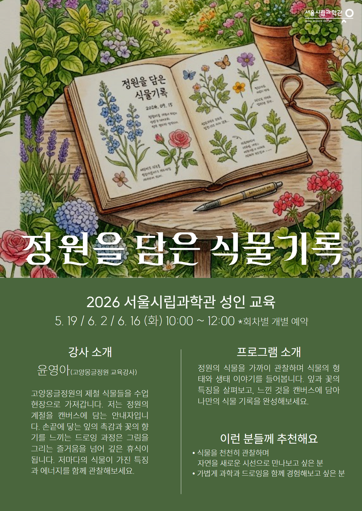 2026 과학관 성인교육 '정원을 담은 식물기록'