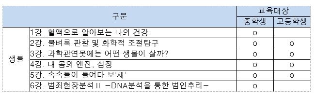 * 대 상: 중학생, 고등학생 (해당 교육실 정원 10~20명 ) [자유학기제, 과학동아리 활동 ]
