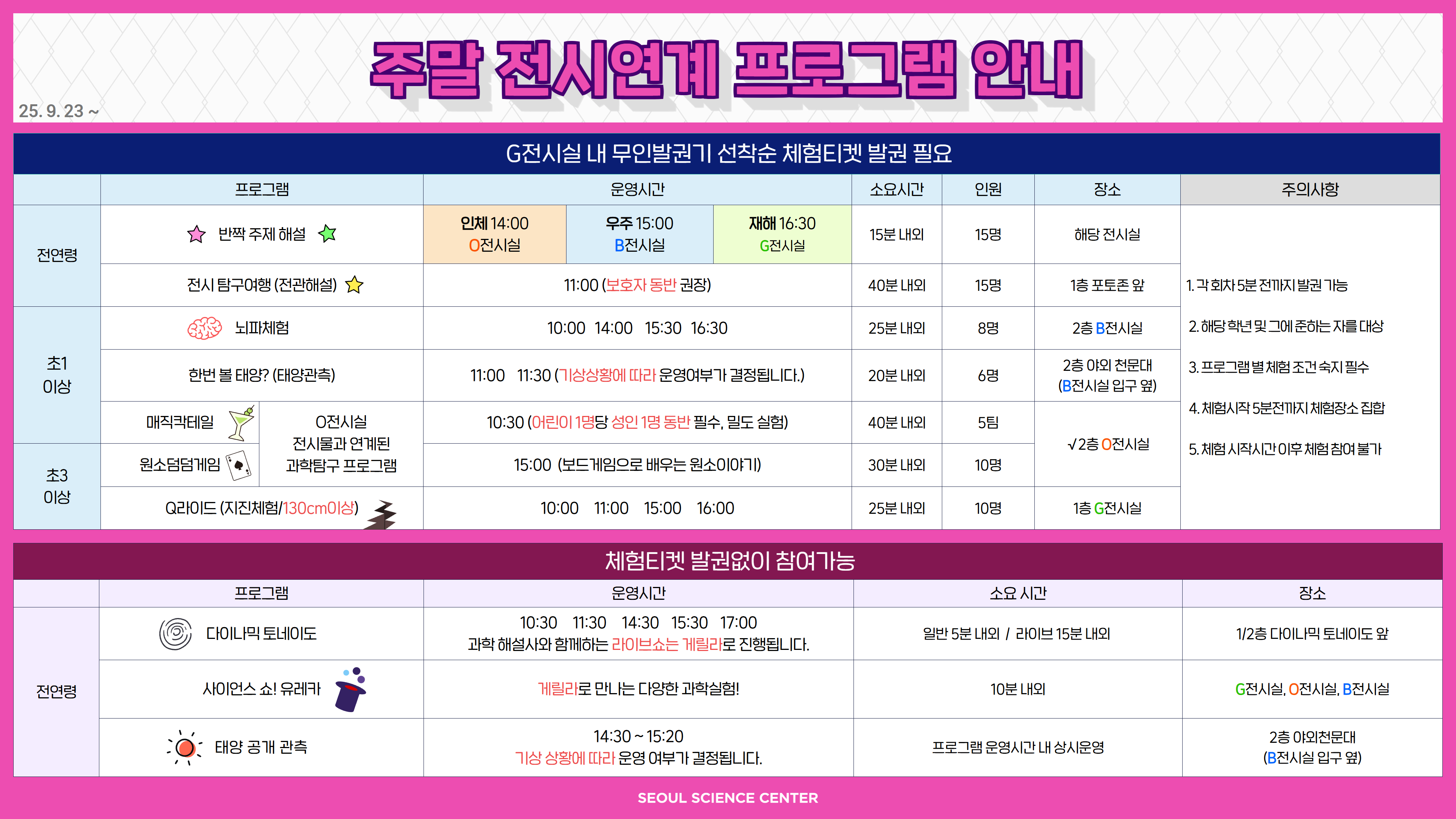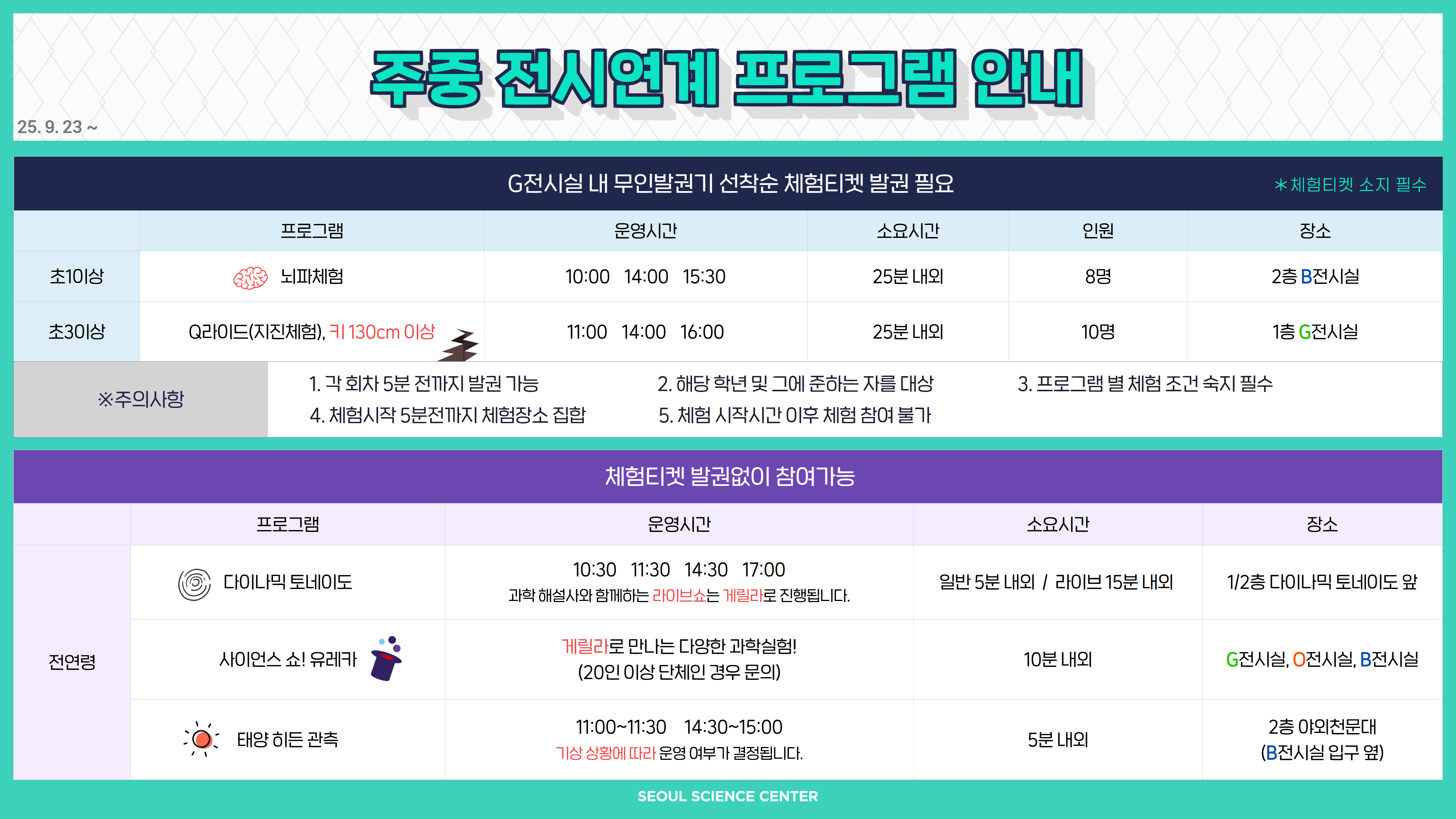 3. 프로그램은 과학관 운영 및 신규 프로그램 도입에 따라 변경될 수 있습니다.