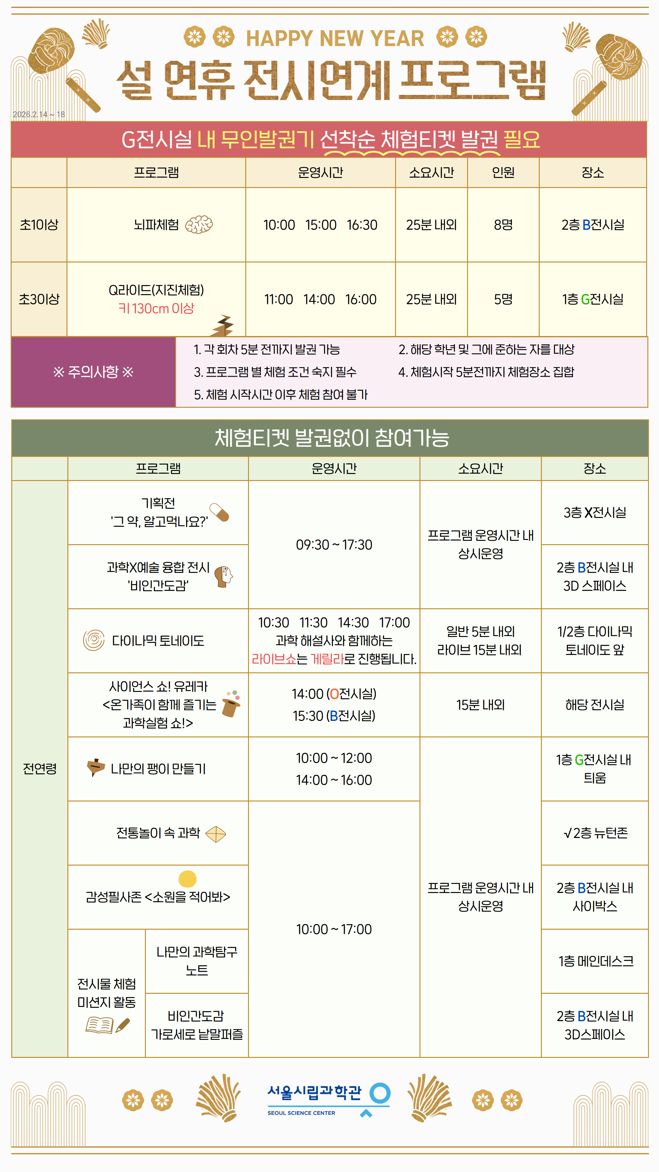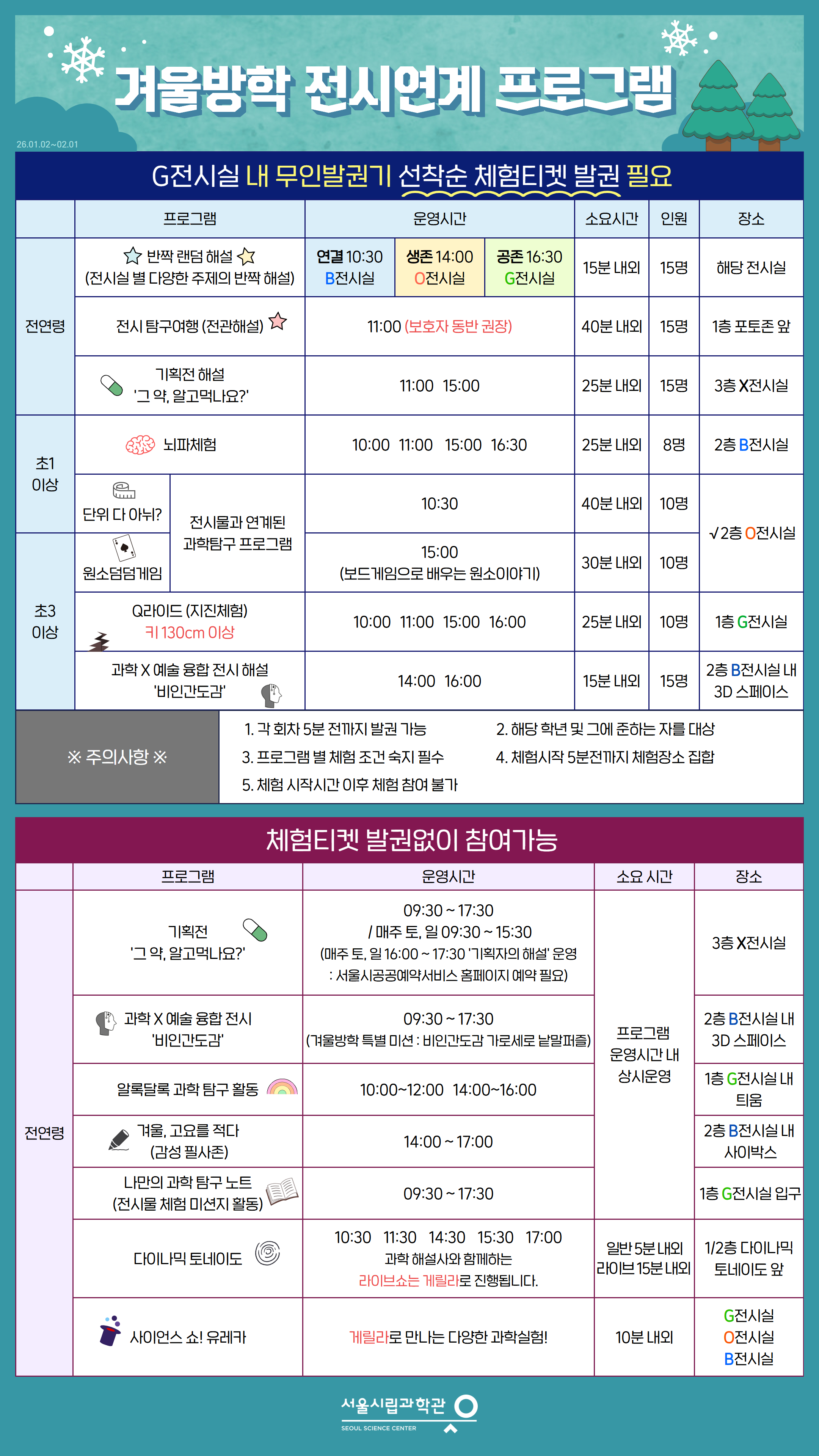 3. 프로그램은 과학관 운영 및 신규 프로그램 도입에 따라 변경될 수 있습니다.